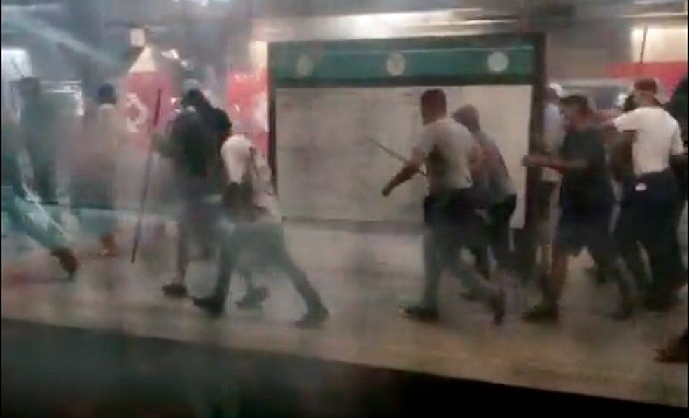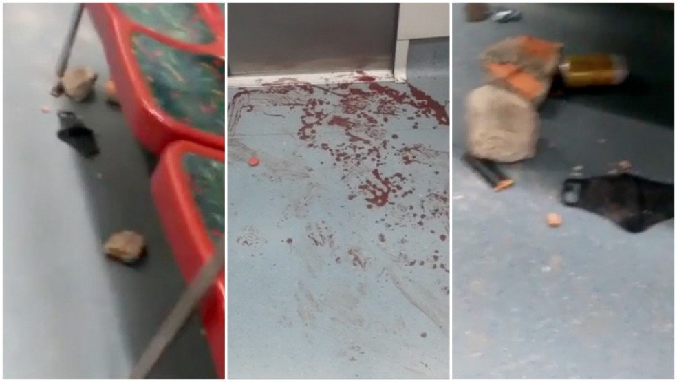 Em algumas imagens, é possivel ver pessoas utilizando barras de ferro durante o confronto, além de manchas de sangue nas locomotivas.