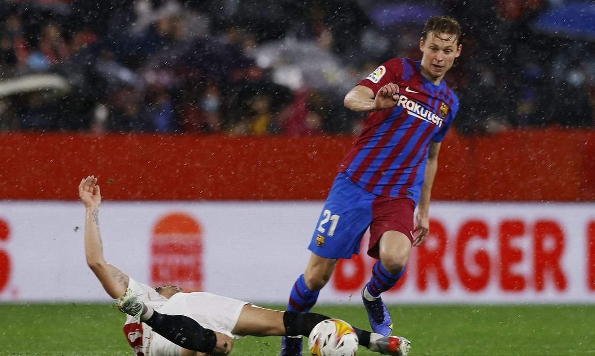 Jogando sob forte chuva, o Barcelona, que tem mostrado evolução, tentou desesperadamente marcar um segundo gol depois que Ronald Araújo empatou com um gol de cabeça aos 45 minutos, mas foi frustrado por um Sevilla igualmente determinado, que teve um jogador expulso após Jules Kounde receber cartão vermelho direto aos 19 do segundo tempo.