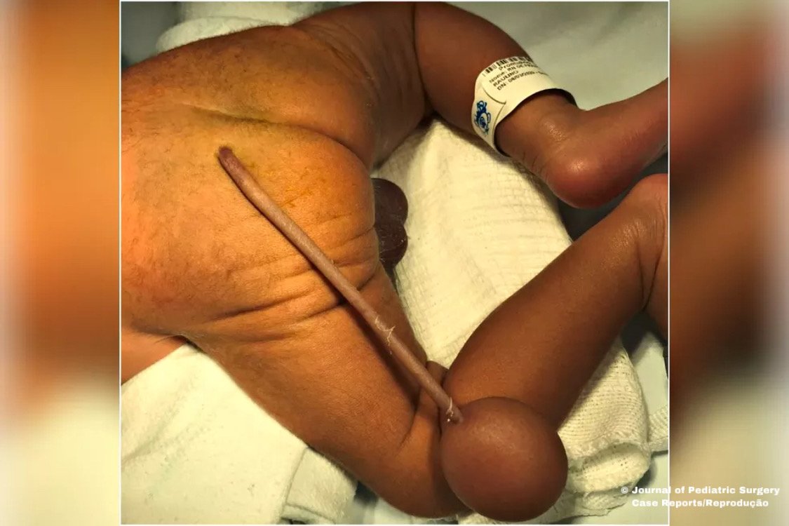 Um bebê prematuro de oito meses nasceu com uma cauda de 12 centímetros que tinha uma bola na ponta, em Fortaleza. O caso aconteceu em 2020, mas foi publicado na Journal of Pediatric Surgery Case Reports, revista científica internacional, em março deste ano.