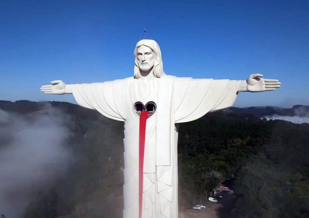 A construção começou em 2019, no Morro das Antenas, na região do Vale do Taquari, e terminou no último dia 22. A estátua é a primeira etapa de um complexo turístico, com lojas, restaurantes e mirantes, que tem previsão de inauguração no primeiro semestre de 2023.