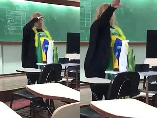 Uma professora foi flagrada quando fazia um gesto nazista numa sala de aula do Colégio Sagrada Família, em Ponta Grossa, no Paraná.