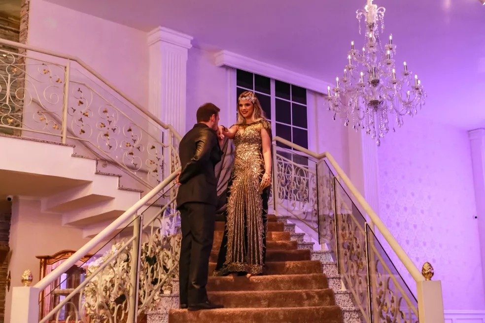 Vestido preto de rainha, sem valsa tradicional e homenagem ao avô: assim foi a festa à fantasia de 'descasamento' da ex-noiva, Kallynca Carvalho dos Santos, realizado na noite de sábado (21).