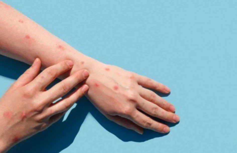 Em geral, de a 1 a 5 dias após o início da febre, aparecem lesões na pele, que são chamadas de exantema ou rash cutâneo (manchas vermelhas). Essas lesões aparecem inicialmente na face, espalhando para outras partes do corpo. Elas vêm acompanhadas de coceira e aumento dos gânglios.