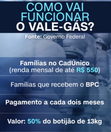 “Com o programa, cada família elegível vai receber, a cada bimestre, um valor monetário correspondente a uma parcela de, no mínimo, 50% da média do preço nacional de referência do botijão de 13 kg de GLP, estabelecido pelo Sistema de Levantamento de Preços (SLP) da Agência Nacional do Petróleo, Gás Natural e Biocombustíveis (ANP), conforme regras a serem definidas em decreto”, afirma a nota da Presidência.