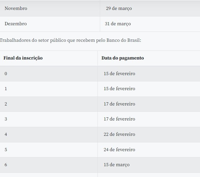 Também hoje, o Banco do Brasil libera o abono salarial para trabalhadores do setor público com inscrição final 4. O pagamento a essa categoria começou a ser feito no último dia 15 e segue até 24 de março, com base no dígito final de inscrição do servidor.