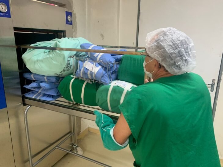 “A CME processa, mensalmente, cerca de 365 ciclos de esterilização, 248 caixas de materiais em consignação, 3.048 artigos avulsos, 48.236 insumos e 2.016 bandejas de instrumentais. De acordo com a RDC Nº 15, de 15 de março de 2012, § 2º, somos classificados como CME Classe II, que é aquele que realiza o processamento de produtos para a saúde não-críticos, semicríticos e críticos de conformação complexa e não complexa, passíveis de processamento.”, explica Alaíne.