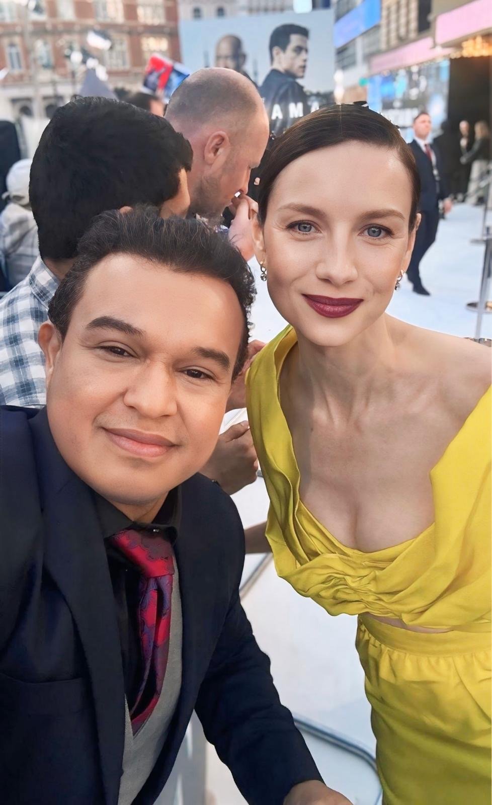 Em evento em Londres o jornalista piauiense Luís Oblanche ao lado da atriz irlandesa Caitriona Balfe que estava radiante vestida de Louis Vuitton, Caitriona é conhecida principalmente por seu papel como Claire Fraser na série "Outlander", atuou também em filmes como "Belfast", "Ford vs Ferrari" “Money Monster" e “Truque de Mestre”.