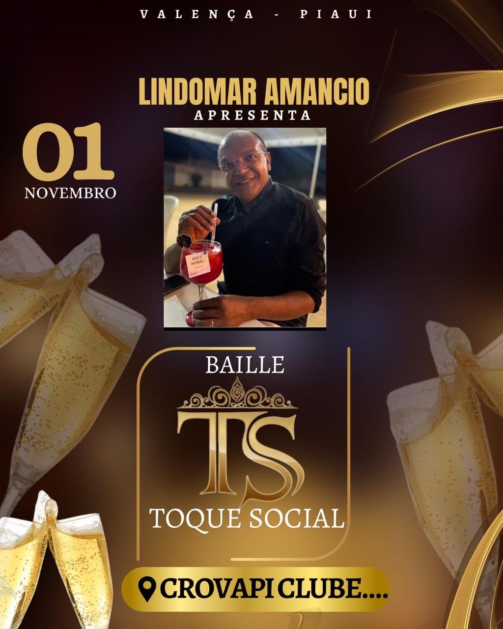 O cronista social, Lindomar Amancio, irá movimentar a sociedade da região do Sambito, dia primeiro de novembro, com sua tradicional festa “Toque Social”. Entre os homenageados da noite, o ex-secretário municipal de Teresina, João Henrique Almeida Sousa.