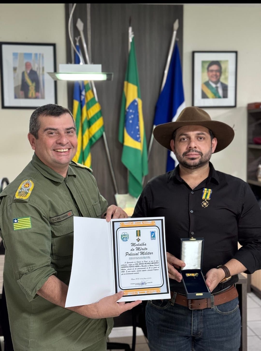 O empresário, Ricardo Medeiros, proprietário da Fazenda Novo Rancho, foi agraciado com a medalha do “Mérito Militar”, pela passagem dos 90 anos da instituição. A comenda foi entregue pelo comandante geral da PM do Piauí, Scheiwan Lopes.