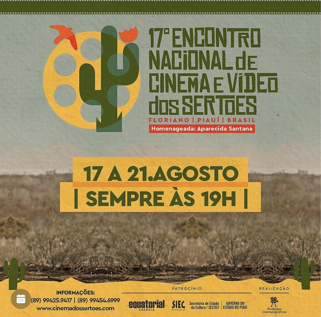 O 17 Encontro Nacional de Cinema e Vídeo dos Sertões é uma realização da Escalet Produção Cinematográfica, Equatorial Piaui Distribuidora de Energia S.A., Secretaria de Cultura do Estado do Piaui, por meio do Sistema Estadual de Incetivo à Cultura/SIEC.