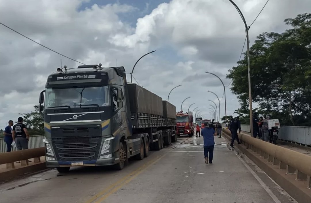 Devido ao acidente, formou-se um longo engarrafamento sobre a ponte.