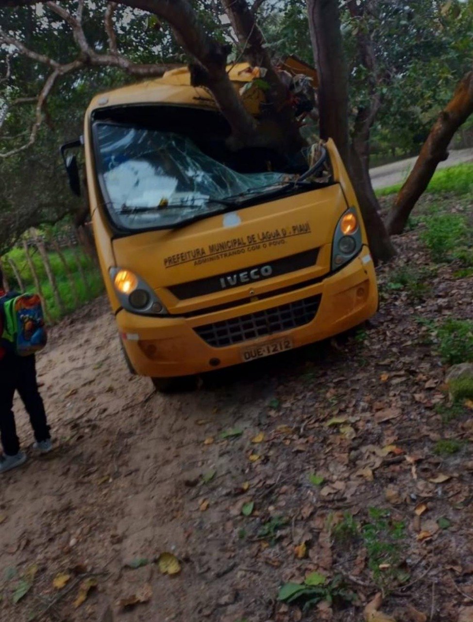 Um ônibus escolar da Prefeitura de Lagoa do Piauí, município localizado a 44 de Teresina, se envolveu em um acidente nas primeiras horas da manhã desta segunda-feira (11), na localidade Corredores, zona rural da cidade, que deixou crianças feridas. Na situação, em uma manobra para desviar de animais na estrada, o veículo acabou colidindo com um cajueiro, ficando parcialmente destruído.