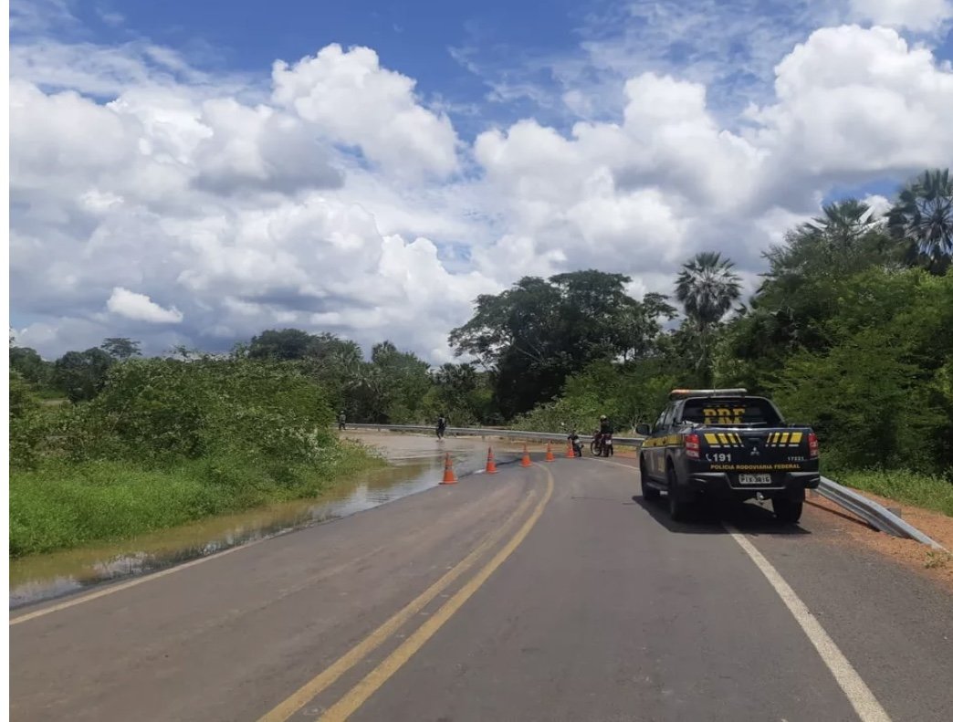 A BR-222 está interditada desde 7h desta quarta-feira (6) após o Rio Matos transbordar sobre a ponte durante fortes chuvas no Norte do Piauí. A rodovia dá acesso à cidade de Batalha.