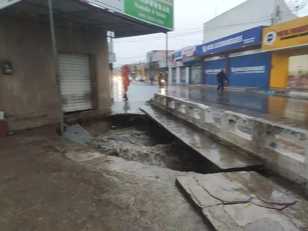 Um bueiro abriu uma cratera no Centro de Floriano, onde uma motocicleta que estava estacionada em um ponto de mototáxi acabou caindo dentro nas imediações da Rua Gabriel Zarur. Além disso, o teto de uma clínica desabou e uma escola foi invadida pelas águas.