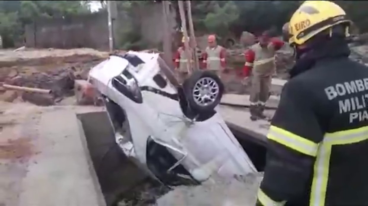 O Corpo de Bombeiros foi acionado e fez buscas na região, mas não encontrou a vítima. Já o carro estava em um bueiro, próximo a obra da galeria, e foi retirado pela equipe de socorro.