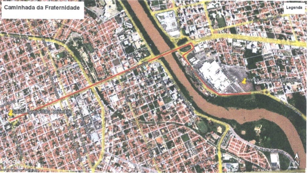 A interdição da Avenida Frei Serafim e da Ponte Juscelino Kubitschek (Ponte da Frei Serafim) será nos dois sentidos, Leste/Oeste e Oeste/Leste, interdição total da via. Depois de sair pela Avenida Frei Serafim, a caminhada segue pela Ponte da Frei, dando a volta pela alça da ponte Juscelino Kubitscheck e seguindo pela Avenida Raul Lopes, passando em frente o Teresina Shopping, finalizando na Arena do Teresina Shopping. A Caminhada termina na Avenida Raul Lopes, e por esse motivo as alças de acesso a ponte também serão interditadas.