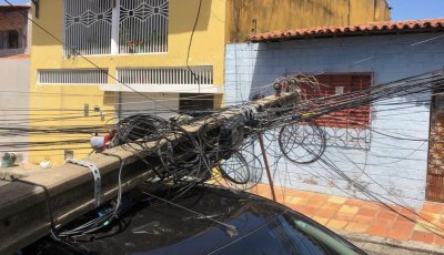 Caminhão de coleta de lixo arrasta fios,derruba poste e atinge carro em THE