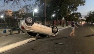 Carro colide com carro, bate no meio-fio e capota com bebê de sete meses e dois adultos na Zona Leste de Teresina