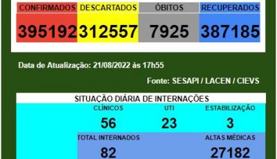 Piauí registra 517 casos confirmados e 1 morte por Covid nas últimas 24 horas