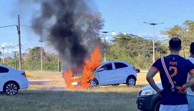 Carro pega fogo em estacionamento da UFPI