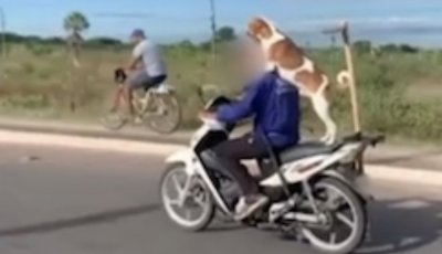 Cachorro é flagrado passeando em garupa de motocicleta na zona norte de Teresina; Veja o vídeo!