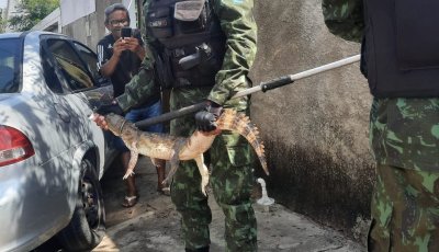 Jacaré é resgatado debaixo de carro na Zona Norte de Teresina após forte chuva
