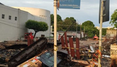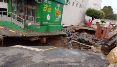Asfalto cede e máquina escavadeira cai em cratera na zona leste de Teresina