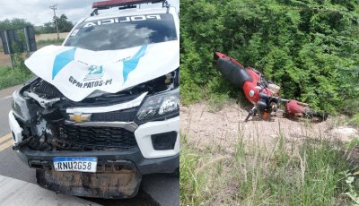 Viatura da PM colide gravemente em motocicleta e deixa dois feridos na BR 407 no Piauí