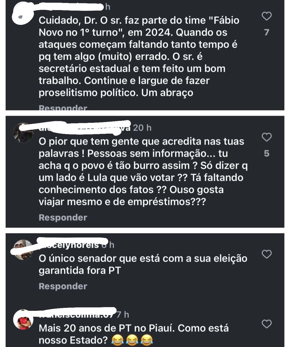 Parece que não foi uma boa estratégia para o secretário de Comunicação do Governo do Piauí, Marcelo Noleto, sair da linha institucional e partir para o embate direto com o líder da oposição, Ciro Nogueira. Mesmo tendo ocupado cargo estratégico no Karnak, Noleto ainda é pouco conhecido fora dos bastidores políticos. E, sem forte carisma nas redes, acabou sendo alvo de críticas e reações negativas ao confrontar um adversário político de peso. A disputa, ao que tudo indica, foi perdida nas redes sociais — e de goleada. O secretário, que trocou o bastidor do governo pela “briga de rua”, abriu espaço para ataques e comentários majoritariamente contrários em suas próprias publicações. A repercussão nas redes foi tamanha que se tornou difícil até filtrar as críticas. Talvez fosse mais prudente delegar esse tipo de embate a um nome político mais consolidado. Afinal, a imagem da comunicação do governo pode acabar sofrendo com esse tipo de exposição improvisada.