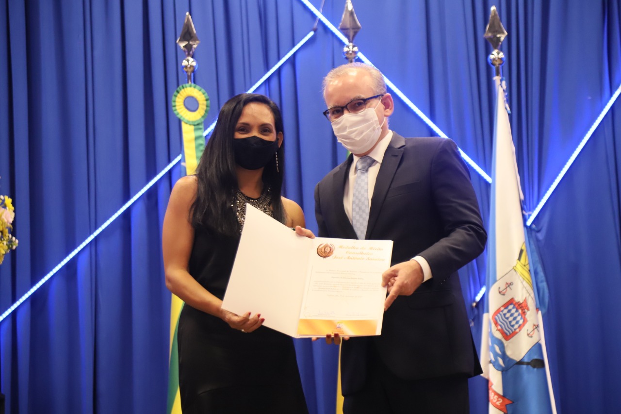 A infectologista Amparo Salmito, gerente de Vigilância de Epidemiologia da Fundação Municipal de Saúde, também foi uma das homenageadas, junto com o filho, o também infectologista Walfrido Salmito. “É uma felicidade para nós. Desde o início da pandemia estivemos firmes para a adoção de medidas importantes para que nossa cidade enfrentasse esse vírus da melhor forma. Esta homenagem hoje nos motiva a seguirmos o nosso trabalho em prol da vida”, considerou a homenageada.