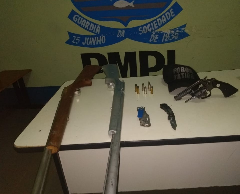 No entanto, a vítima também procurou a polícia relatando as agressões. Os militares realizaram buscas na residência do acusado, onde foram apreendidos um revólver cal. 38, sete munições intactas, duas espingardas de fabricação artesanal e dois canivetes.
