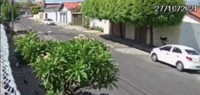 Câmeras de segurança flagraram o momento em que os bandidos invadiram a residência. Conforme as imagens, os criminosos aproveitaram o momento em que uma pessoa estava entrando na residência. Antes do portão fechar, um dos bandidos, que estava em um veículo Voyage, cor branca, desceu rapidamente e invadiu a residência.