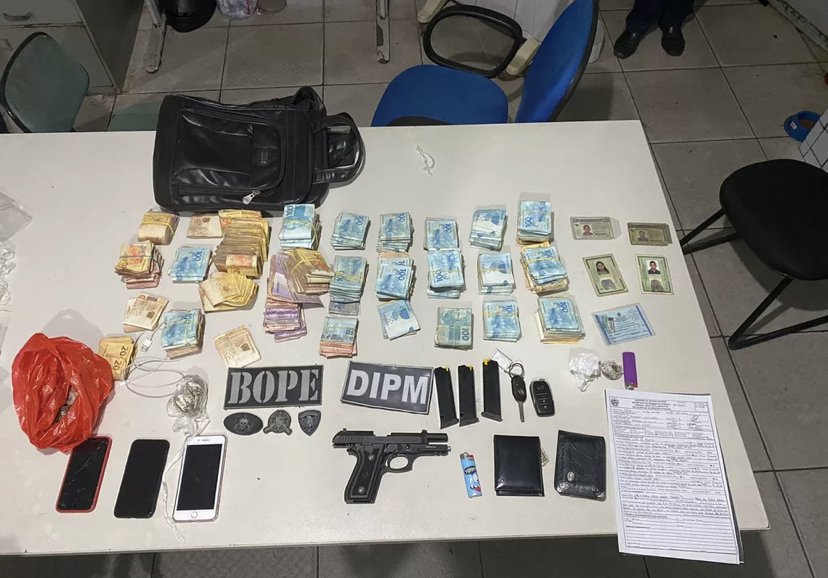 O dinheiro foi localizado dentro de um compartilhamento secreto no painel do carro. Ao todo, a polícia apreendeu porções de maconha e cocaína, uma pistola calibre 9 mm, cerca de R$ 180 mil em dinheiro, celulares e os dois veículos.
