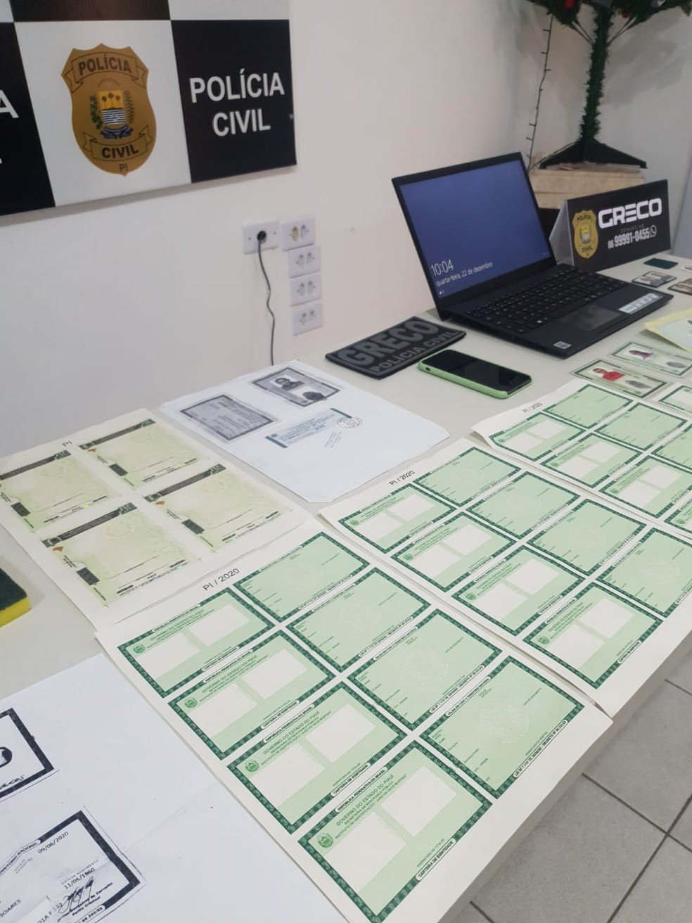 Segundo o Grupo de Repressão ao Crime Organizado (Greco), o suspeito foi flagrado com várias cédulas de identidade e CNH em branco, além de documentos falsos relativos aos benefícios previdenciários e bancários.
