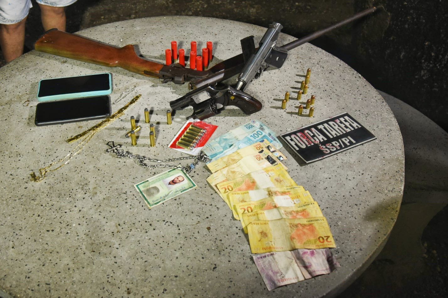 De acordo com o coordenador da Força Tarefa, major Audivam Nunes, na casa do suspeito foi encontrado um revólver calibre 38, uma arma longa de calibre 36 e uma uma pistola 380.