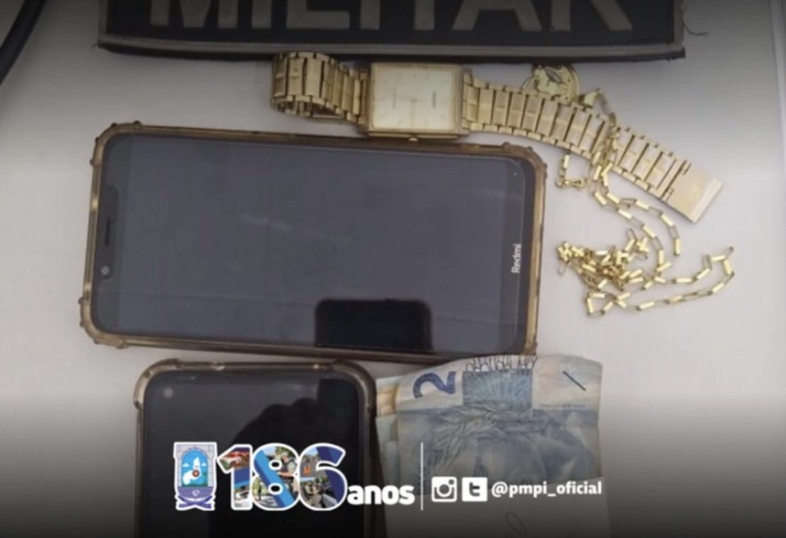 Ao chegarem ao local informado, os policiais identificaram o grupo criminoso e em posse dos envolvidos, foram apreendidos dois celulares, relógio de pulso, além de dinheiro e um colar dourado.