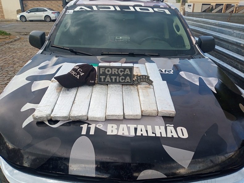 Além da droga, também foram apreendidas 10 munições de calibre 32 que estavam intactas na mala do suspeito.