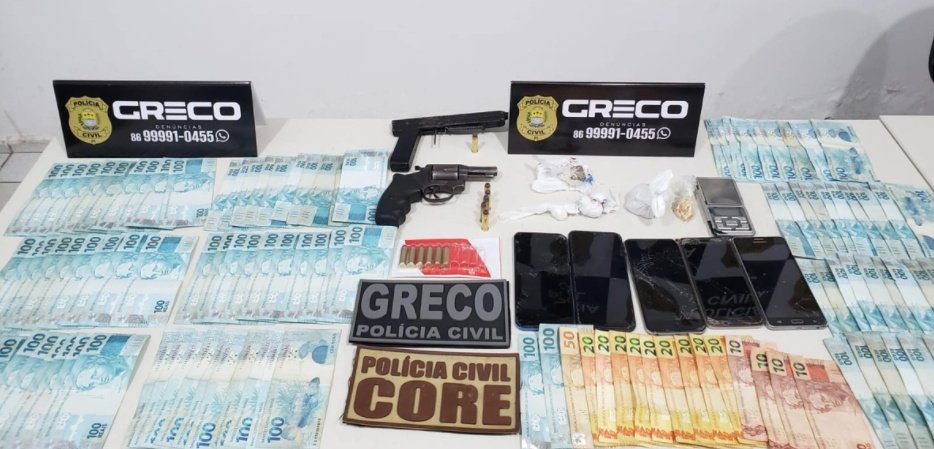 Segundo a polícia, durante cumprimento a mandado de busca e apreensão em uma residência, os policiais encontraram os suspeitos com drogas e R$ 10 mil em espécie.