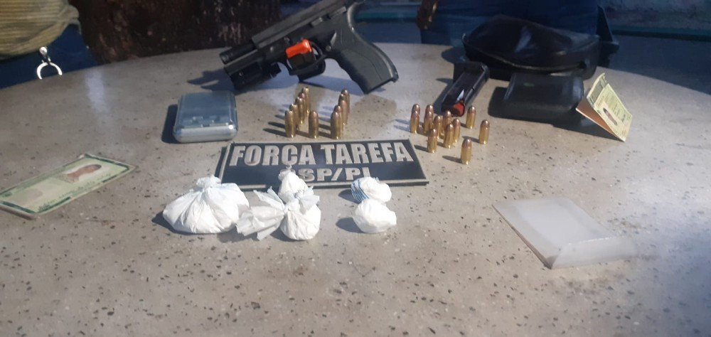 "Tivemos a informação que um depósito no Parque Alvorada, além de vender bebidas, estava vendendo entorpecentes. Quando nossas equipes chegaram no depósito, duas pessoas conseguiram fugir, inclusive colidiram com nossa viatura descaracterizada. Essas duas pessoas estavam armadas e a moto que eles conseguiram fugir era roubada. Mas conseguimos efetuar a prisão do proprietário do depósito e de um funcionário que portava uma pistola calibre 40, com mira a laser, apreendemos munições, entorpecentes e uma balança de precisão", disse o major.