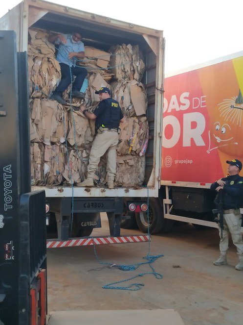 Os policiais estavam realizando fiscalização na região quando abordaram um veículo de carga que vinha do Pará e era conduzido por um homem de 34 anos. De acordo com a documentação fiscal da carga apresentada, o caminhão baú estaria transportando um carregamento de papelão.