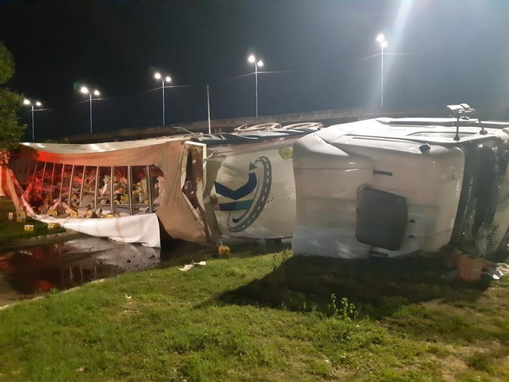 Segundo a PRF, a causa presumível do acidente foi carga mal estivada.