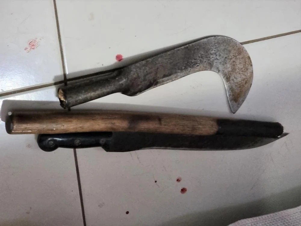 Já por volta das 14h30, armado com uma roçadeira e um facão, o acusado foi até a residência do irmão e lá chegando, para se vingar, tentou matar o próprio sobrinho, uma criança de apenas três anos de idade. Uma adolescente de 16 anos que estava no local tentou defender a criança e também foi atingida”, relatou o policial.