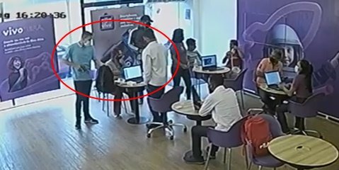Conforme as imagens, o assalto ocorreu após um dos suspeitos ter entrado na loja e ter se passado por cliente. O suspeito, de camisa azul, entrou na loja e estava sendo atendido por uma funcionária quando o comparsa, de casaco preto, entrou e anunciou o assalto. A dupla realizou um arrastão no local, rendendo funcionários e clientes.