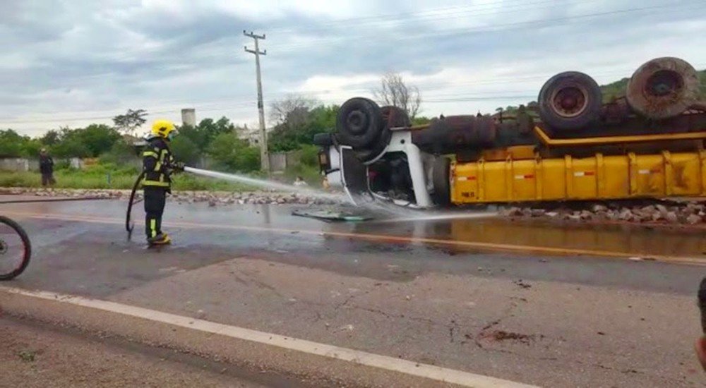 Na tarde dessa terça-feira(01), um caminhão-caçamba, carregado de pedras, saiu da pista e capotou na BR 407, entre os municípios de Picos e Germiniano, região Centro-sul do Piauí.