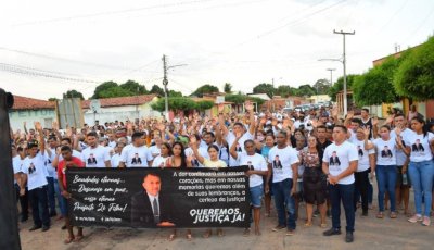 No aniversário da cidade de Madeiro, população faz passeata pedindo justiça por prefeito assassinado