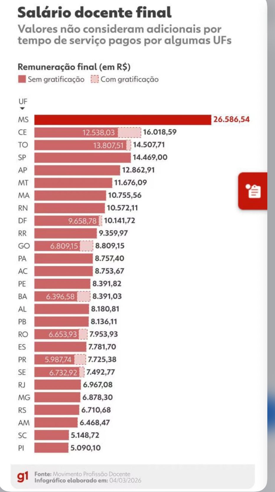 Um levantamento nacional divulgado pelo portal G1, com base em dados do Movimento Profissão Docente, revela um dado preocupante para a educação pública do estado: o Piauí aparece na última posição do país no salário final pago a professores da rede estadual. De acordo com o infográfico do estudo, a remuneração final média no Piauí chega a R$ 5.090,10, o menor valor entre todas as unidades da federação. O contraste é grande quando comparado a estados como Mato Grosso do Sul, que lidera o ranking com salários superiores a R$ 26 mil, ou Ceará e São Paulo, onde os valores ultrapassam R$ 14 mil em determinadas condições. O dado chama atenção porque ocorre justamente no estado cujo governo divulga frequentemente uma política de “educação de excelência” como uma de suas principais vitrines administrativas. Nos bastidores políticos, a divulgação do ranking também reacende críticas à gestão da Secretaria de Educação durante o período em que esteve sob comando de Washington Bandeira, nome que é apontado como provável candidato a vice-governador na chapa do atual governador Rafael Fonteles. Para críticos da política educacional do estado, o levantamento expõe uma contradição: o mesmo sistema de ensino apresentado na propaganda oficial como modelo nacional é também o que menos remunera professores no país. Educadores e observadores da área afirmam que o quadro revela uma relação considerada frágil entre o governo estadual e o magistério, já que, mesmo com avanços em indicadores educacionais divulgados pela gestão, o reconhecimento financeiro da categoria permanece entre os mais baixos do Brasil. Com Washington Bandeira cotado para integrar a chapa majoritária do governo e visto por aliados como um possível nome forte para o futuro político do estado, o debate sobre valorização docente e política salarial para professores tende a ganhar ainda mais espaço no cenário político piauiense.