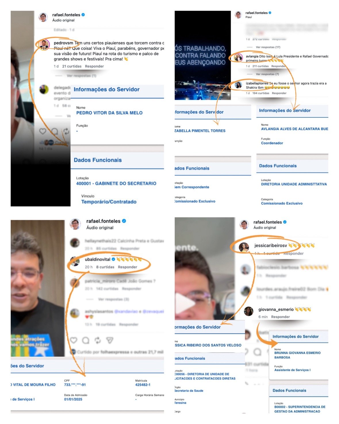 A circulação de um vídeo da campanha de 2022 do governador Rafael Fonteles voltou a tona o debate sobre o uso político das redes sociais no Piauí. Na gravação , o então candidato convoca apoiadores incluindo ocupantes de cargos comissionados a intensificarem a atuação digital para enfrentar adversários. Nos últimos dias, páginas de monitoramento político passaram a divulgar levantamentos que, mostram perfis que atuam de forma recorrente na defesa do governo nas redes sociais e nomes no Diário Oficial do Estado do Piauí como ocupantes de cargos comissionados. Nas publicações, os comentários seguem um padrão semelhante de linguagem e atuação, com foco na defesa do governo e críticas a opositores, comissionados e familiares sendo estimulados a atuar ativamente nas redes, em defesa do governo.