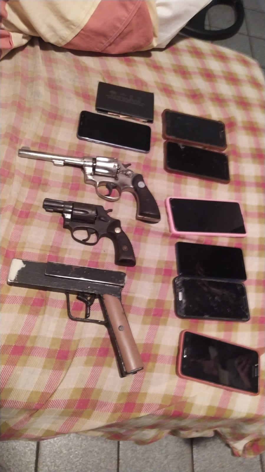 A prisão foi realizada no momento em que o trio saiu de dentro do “cabaré”. A polícia apreendeu três armas de fogo, sete celulares e uma carteira, que provavelmente era de uma das vítimas. Os indivíduos foram conduzidos para a Central de Flagrantes de Teresina.